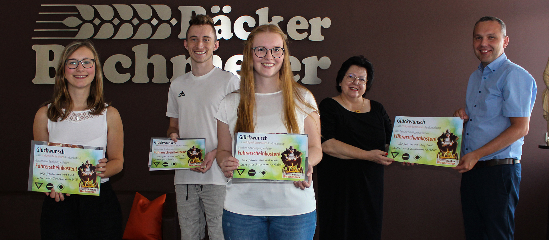 Die Glückwünsche sind verbunden mit der Übernahme der Führerscheinkosten in Anerkennung der guten Ausbildungsergebnisse.