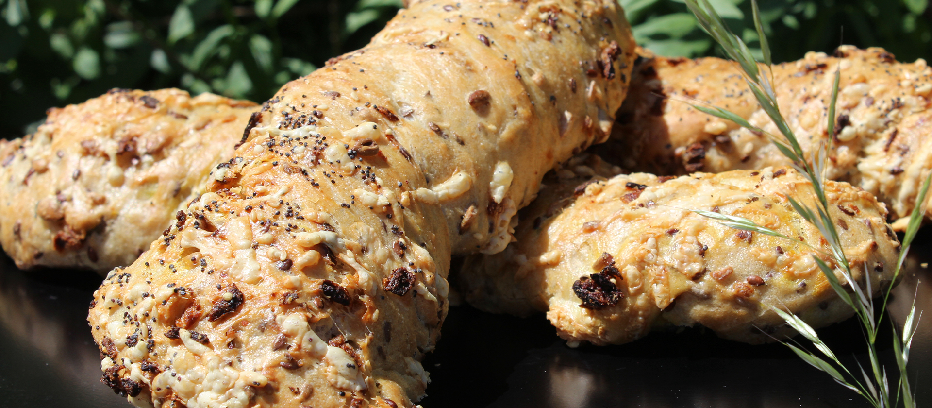 Seit Ende Mai findet man unser Grill-Stangerl in unseren Theken – diese Stange unterscheidet sich zu den restlichen Backwaren ungemein: Eine feine Weizenstange mit unter anderem Zwiebeln, Käse, Leinsamen, Kürbis- und Sonnenblumenkernen.