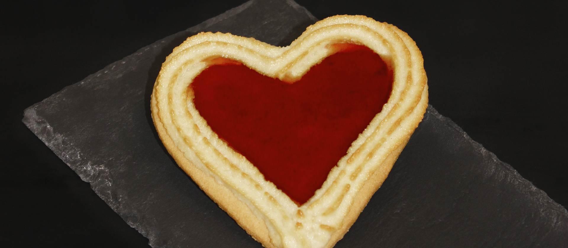 > Valentinherz (Saftiges Spritzgebäck mit fruchtig-süßer Erdbeermarmelade)